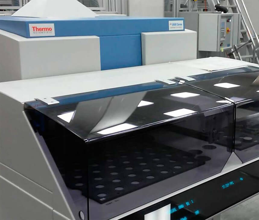 Состоит из автоматизированной системы пробоподготовки и рентгенофлуоресцентного спектрометра на окончании. Подбор оборудования зависит от анализируемых материалов.